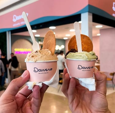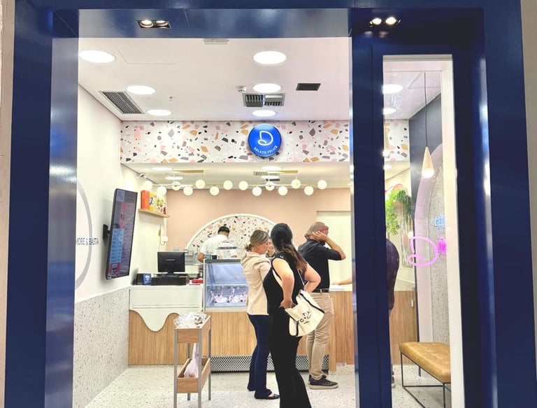 Criar ambientes encantadores com produtos de decoração que refletem a essência da sua franquia de gelato, utilizando cores sofisticadas e elegantes.